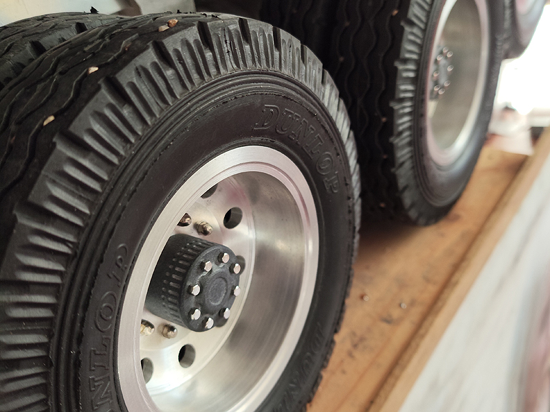 Auch die Standard-Radnabenkappen habe ich nach längerer Zeit neu gestaltet. Öfters komplett neu gezeichnet, haben diese nun ihr entgültiges Design erhalten. Hierfür war es notwendig die Radnaben auf 32 mm Höhe abzufräsen. Die Kappen wurden in Kunststoff gesintert und anschließend auf den Naben verschraubt. Damit ich bei einem notwendigen Radwechsel nicht zusätzlich 8 Schrauben der Kappe lösen muss, sind nur 2 mit der Nabe direkt verschraubt. Lackiert werden die Kappen später in schwarz.