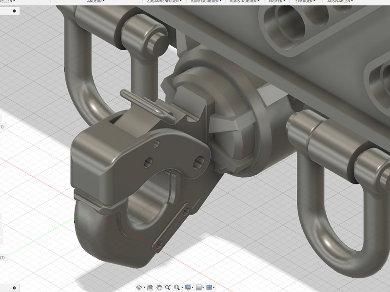 Ein 1. Entwurf für die Hakenkupplung meines Peterbilts. Leider muss ich noch verschiedene Verstärkungen vornehmen, da das sonst zu filigran wird. Soll später schließlich einige Kilo ziehen! Letzen Endes möchte ich das Ganze in Messing drucken lassen. Die Länge über alles sind stolze 33 mm.😉
